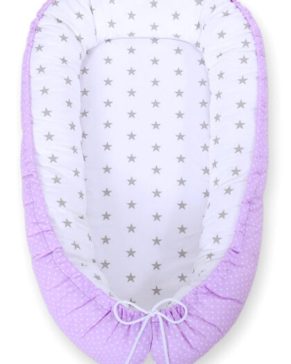 Dit dubbelzijdige babynestje is een geweldige oplossing voor de eerste maanden van het babyleven. De baby voelt zich er veilig in, omdat het lijkt op de buik van mama. De zachte en hoge randen van het nestje die de baby omhult, beschermen de baby en dempen harde geluiden, waardoor een goede rust wordt gegarandeerd.