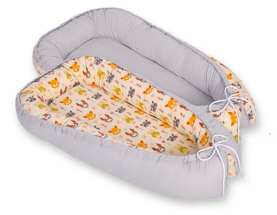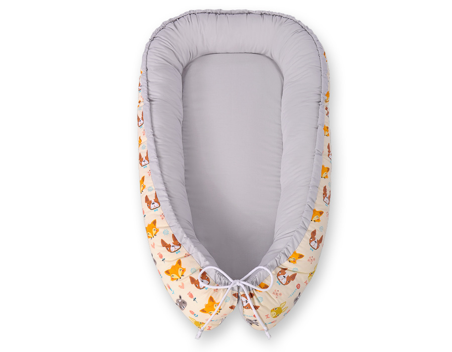 Dit dubbelzijdige babynestje is een geweldige oplossing voor de eerste maanden van het babyleven. De baby voelt zich er veilig in, omdat het lijkt op de buik van mama. De zachte en hoge randen van het nestje die de baby omhult, beschermen de baby en dempen harde geluiden, waardoor een goede rust wordt gegarandeerd.