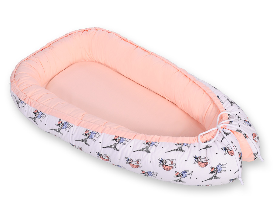 Dit dubbelzijdige babynestje is een geweldige oplossing voor de eerste maanden van het babyleven. De baby voelt zich er veilig in, omdat het lijkt op de buik van mama. De zachte en hoge randen van het nestje die de baby omhult, beschermen de baby en dempen harde geluiden, waardoor een goede rust wordt gegarandeerd.