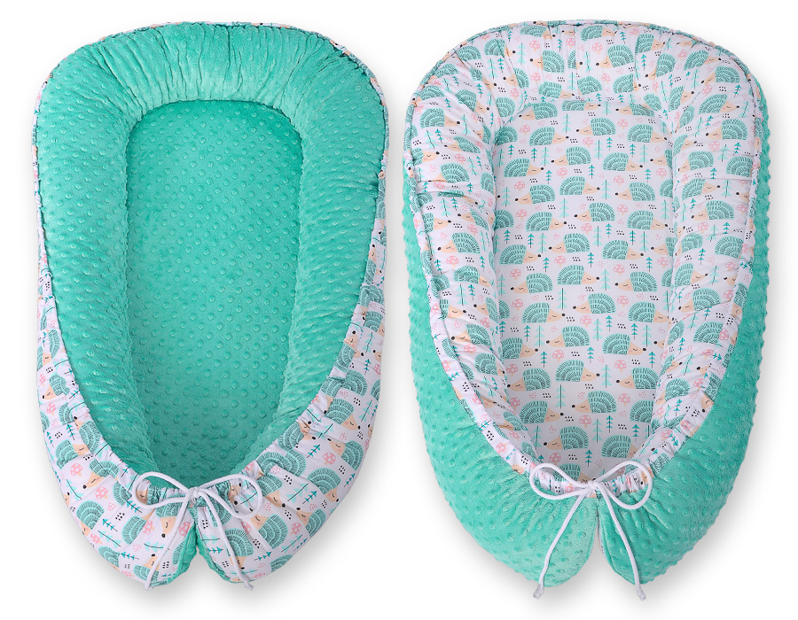 Dit dubbelzijdige babynestje is een geweldige oplossing voor de eerste maanden van het babyleven. De baby voelt zich er veilig in, omdat het lijkt op de buik van mama. De zachte en hoge randen van het nestje die de baby omhult, beschermen de baby en dempen harde geluiden, waardoor een goede rust wordt gegarandeerd.