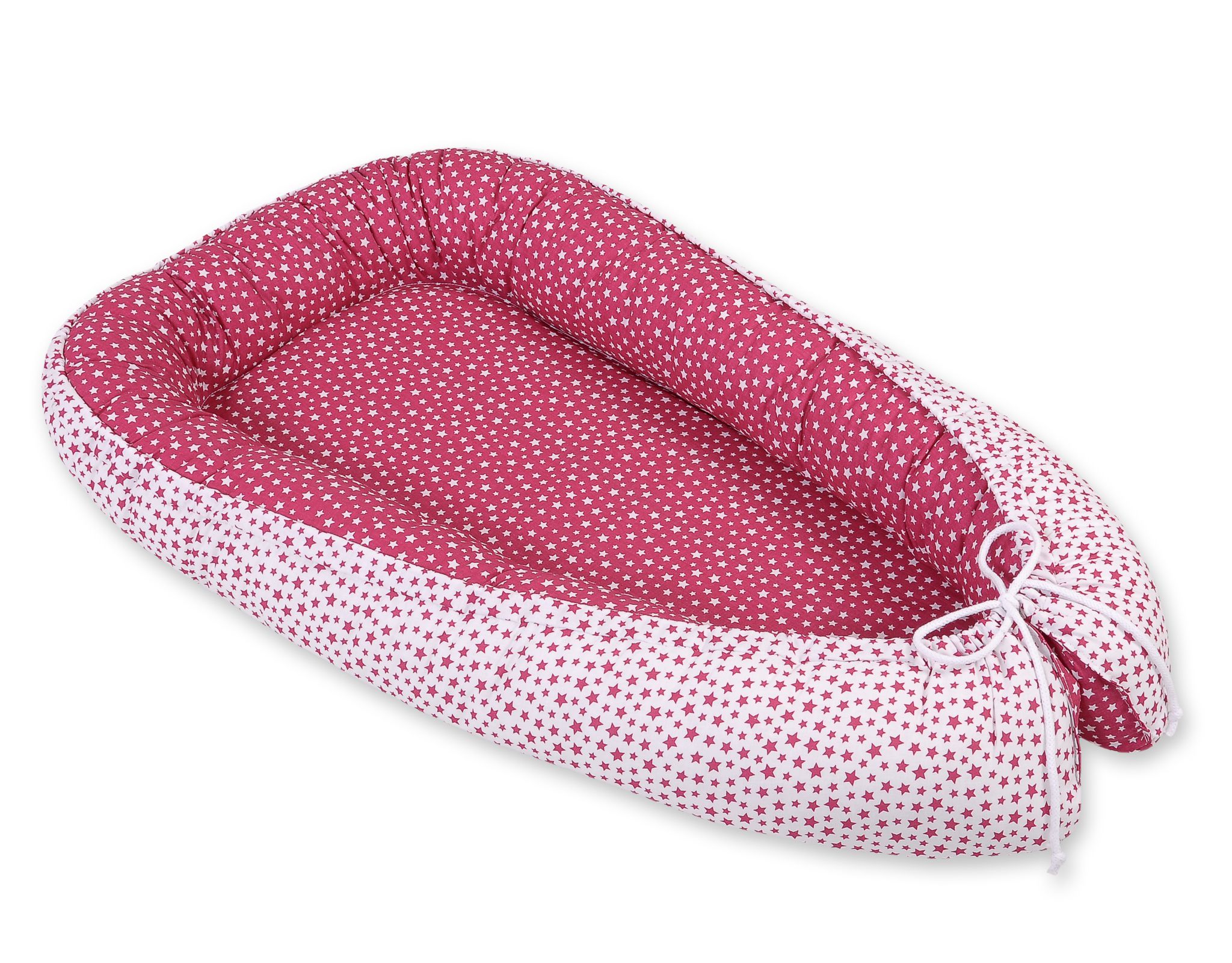 Dit dubbelzijdige babynestje is een geweldige oplossing voor de eerste maanden van het babyleven. De baby voelt zich er veilig in, omdat het lijkt op de buik van mama. De zachte en hoge randen van het nestje die de baby omhult, beschermen de baby en dempen harde geluiden, waardoor een goede rust wordt gegarandeerd.