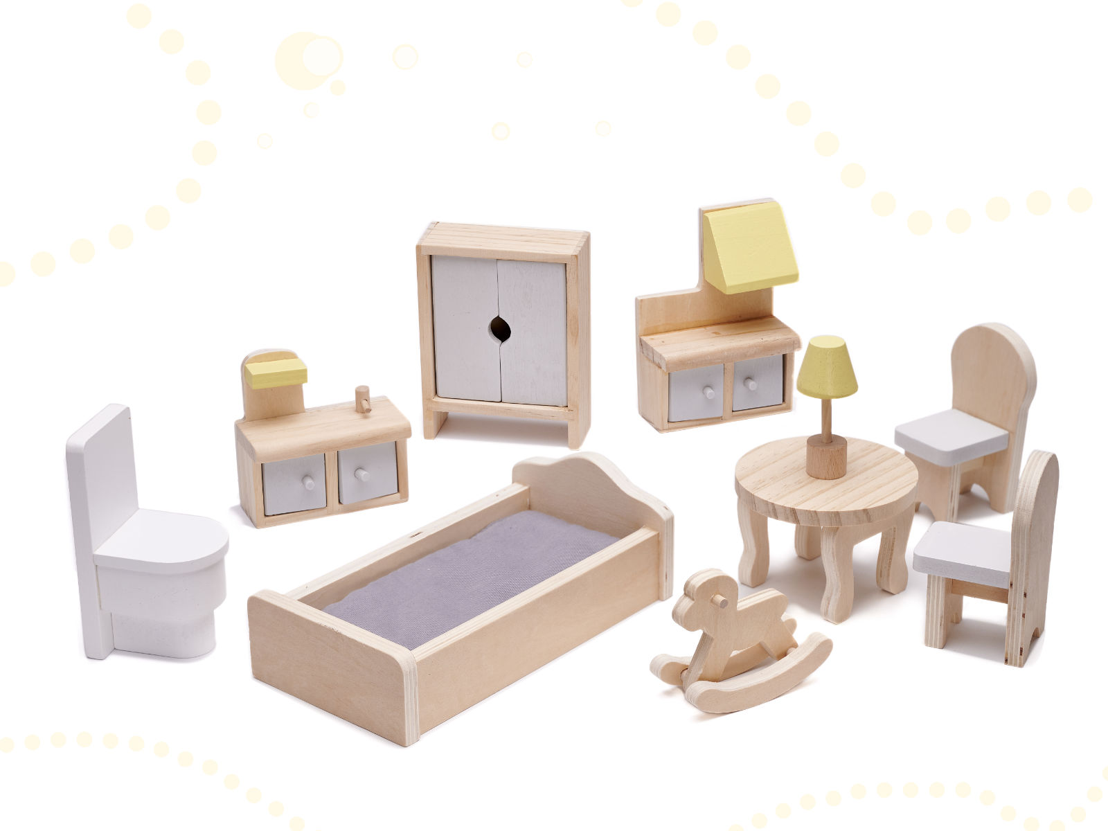 Het houten poppenhuis wordt geleverd met bijpassende meubeltjes, zodat kinderen direct hun eigen miniwereld kunnen inrichten. Van woonkamer tot slaapkamer: elke ruimte kan naar wens worden ingericht. Dit stimuleert creativiteit, verbeeldingskracht en sociale vaardigheden.Stevige en duurzame houten constructie