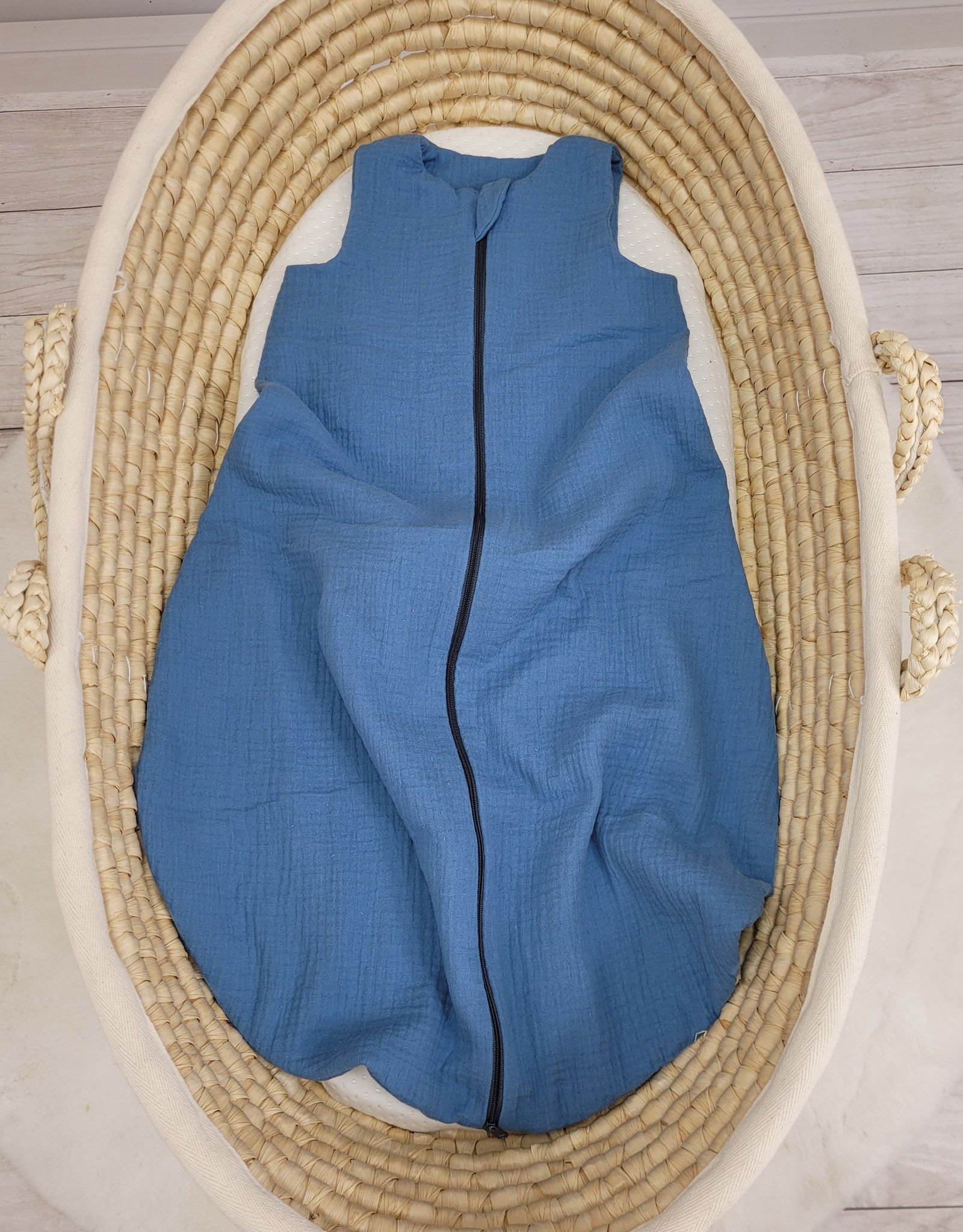 De lichte mousseline babyslaapzak is gemaakt van duurzaam, 100% gecertificeerd katoenen mousseline. Mousseline is zacht en aangenaam om aan te raken, en irriteert de tere babyhuid niet. Tegelijkertijd is het materiaal uiterst praktisch in gebruik.