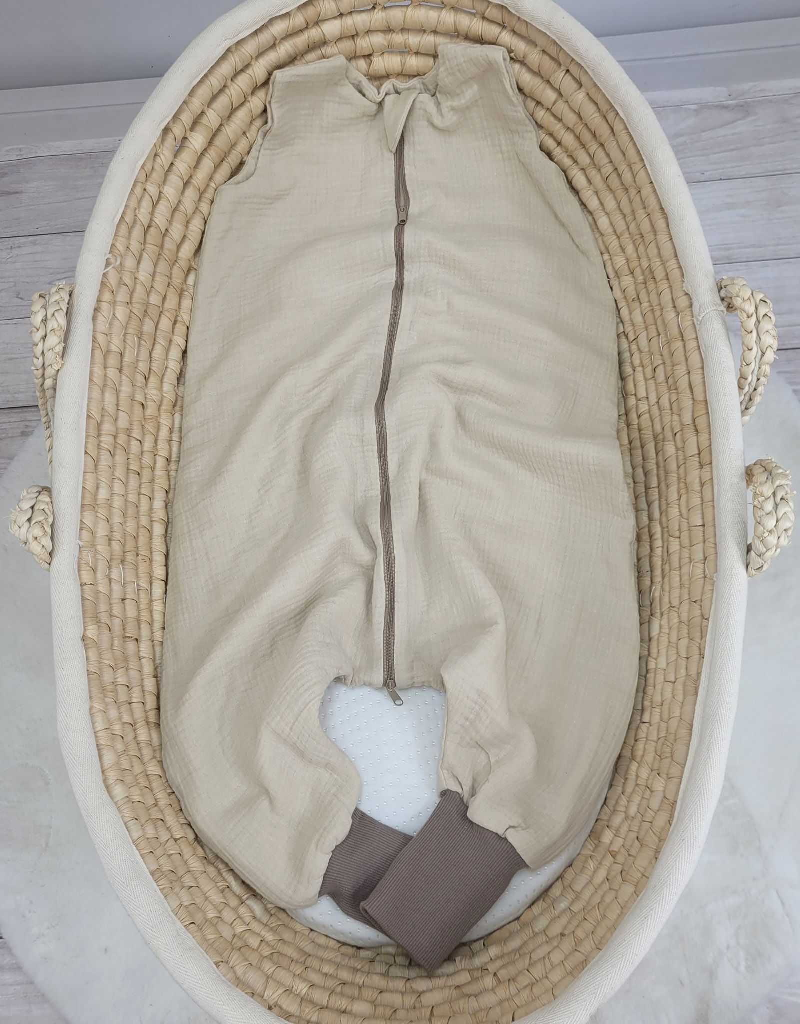 De lichte mousseline babyslaapzak is gemaakt van duurzaam, 100% gecertificeerd katoenen mousseline. Mousseline is zacht en aangenaam om aan te raken, en irriteert de tere babyhuid niet. Tegelijkertijd is het materiaal uiterst praktisch in gebruik.