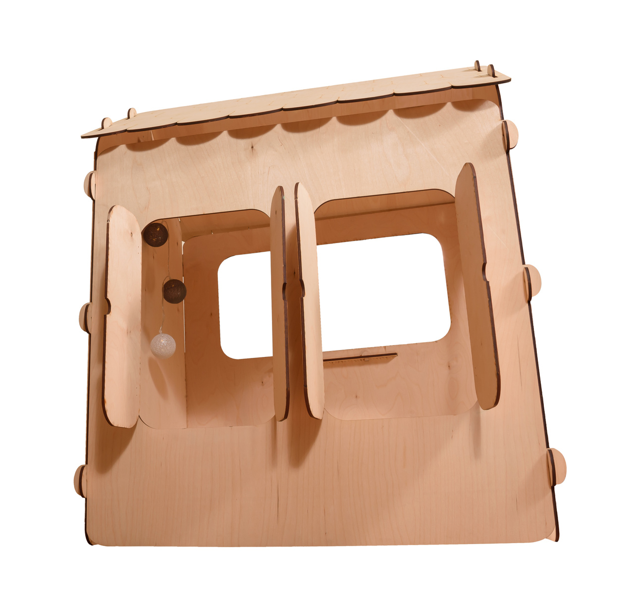 Het kinderhuis is vervaardigd uit hoogwaardig hout en ontworpen met oog voor veiligheid en stabiliteit. De solide constructie zorgt ervoor dat het huisje tegen een stootje kan en jarenlang meegaat. De natuurlijke uitstraling past perfect in een moderne, Scandinavische of minimalistische kinderkamer. Het speelhuisje is ook geschikt voor gebruik in de tuin.